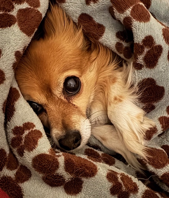 So…. twelve degrees. A day of changing sheets, doing laundry, paying a few bills, planning what to make for dinner, catching up on some correspondence, reading and a few television series I’ve missed. Sounds like the life of a retired person…which I guess I am. All that, and finally sitting down to write a couple of lines here, while I eat some of that ungifted chocolate. Rudi is cozy in his blanket, and not long after the sun sets, that’s my plan too.
