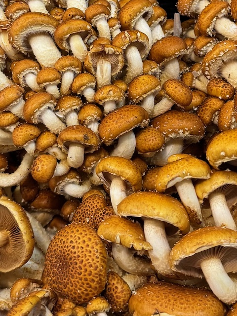And while out for groceries last week this beautiful display of chestnut mushrooms (Pholiota adiposa) was so eye-catching that I couldn’t resist taking a photo.