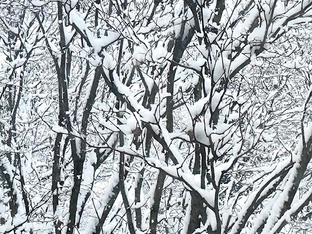 We have had ongoing snow over the past few days – first six inches, moving into the next day adding five more inches, followed by two more inches a few hours later. The view from my bedroom window presents as white on black