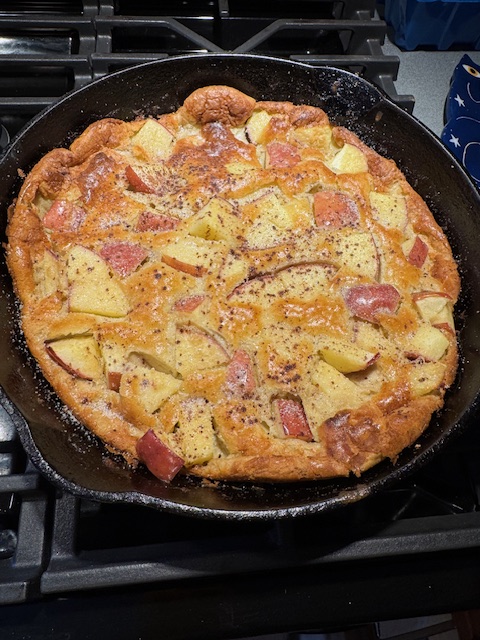 Staying with the food theme, for the last two Sundays in a row the weekly Dutch Baby has been Apple-Ginger. I’ve added some allspice to the batter, chopped apples and pieces of crystalized ginger, vanilla, with a dusting of cinnamon and vanilla sugar on top. I think I could even do this breakfast three weeks in a row and be happy.