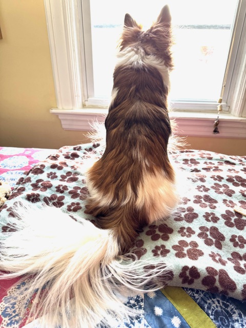 Little Rudi stares out the upstairs window, waiting, nose twitching, perhaps in anticipation of verdant aromas emerging, when it all will begin again…. hopefully soon……