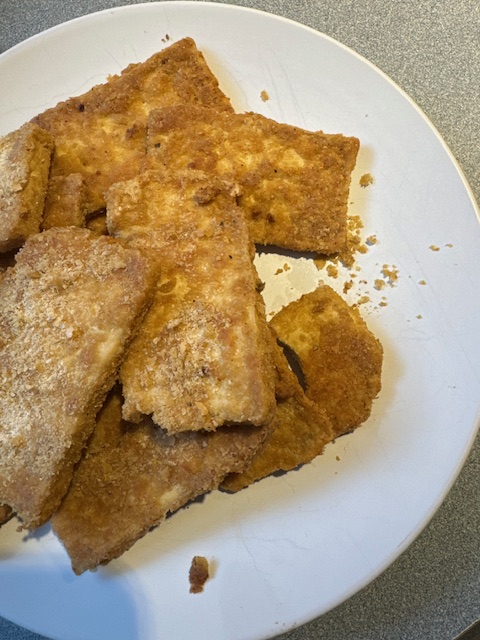 A few weeks ago I was visiting an old friend who made us some Shake and Bake Tofu for lunch, which I hadn’t had in a long time. She used to live on The Farm during the 1970’s, which back then was a commune in Tennessee (look up Steven Gaskin/The Farm if you are interested in the history). They ate a lot of tofu. She makes it with nutritional yeast, which is a little different than what was in The Farm Cookbook. I totally love the taste of nutritional yeast and was so glad to revisit this, having made it already twice since I’ve seen her. Just writing about it I feel like I want to make it again this week.