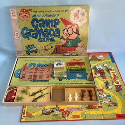 While slipping down the backwaters of board game memory, there were a few from childhood that were not up there in storage (chess and checker games) or others that did not really stand the test of time but which I still recall playing while sitting on a cold floor of red linoleum tiles in the basement “playroom” with my siblings and friends. There was one called “Camp Grenada”, based on a then-popular song by Allen Sherman called “Hello Muddah, Hello Faddah (A Letter From Camp).” It had all sorts of rubber bugs, spiders and other designated “icky animals” and a plastic bus that players had to try and race home in without it breaking down. When we got tired of playing with the game, we played with the rubber insects.
