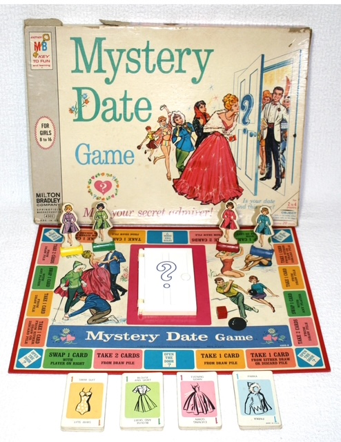 And then there was Mystery Date, where you opened the door to reveal your secret admirer, which could be The Skier, The Beachcomber, The Formal Dance/Prom date, the Go on a Picnic date, the Bowler, or “The Dud.” The Dud was the undesirable date. If you opened the door and got The Dud you lost all your cards.