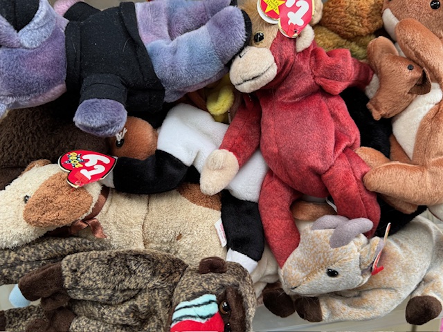 In the past all of their childhood books (beautifully illustrated books) were brought to them. Hopefully their own children were able to appreciate some of those wonderful stories. This weekend’s haul from the attic included a large collection of beautiful teddy bears, a box full of Beanie Babies, a small tub of small dolls from around the world (including a pair of vintage Greek folk dolls my father brought be back from Greece when I was a child, which I’m certain my kids have no interest in) a metal music stand from when they were playing instruments in school, embroidery floss and instructions on how to make a “friendship bracelet,” a loom for weaving potholders, a collection of Barbies and a stack of old board games.