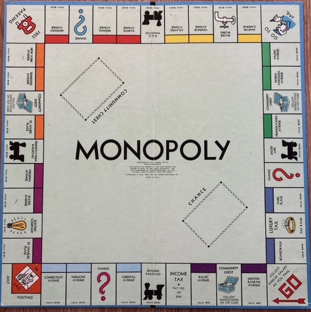Which brings me to Monopoly, a game which was not up in the attic but must have vanished to the ages. It was a staple of late elementary and middle school. It seems almost everybody back then had Monopoly. The game could go on (and on, and on) for a very long time – sometimes an agonizingly long time. It might go on long enough that you put it aside to eat lunch or dinner and came back to continue afterwards. When I think back, I don’t even know that I liked it all that much, although some of the names were fun (Marvin Gardens!) and I loved the little metal tokens, especially the Dog.