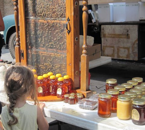 I love The Bee Man table.  There is a wooden display of a tray from a hive with bees encased in glass.   You can stand there and watch them busily doing their bee thing in and out of the cells of the comb.  I always look for The Queen.  Sometimes I can find her. Sometimes I have to ask the Bee Man to show me where she is.  He always knows.