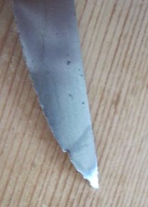 I don’t think there are more than a few unchipped dishes left in the house. In the beginning, I was sure that the SO must be acting out some passive/aggressive stuff for some reason. How could this be possible? Why does he do this? What’s wrong with him? Maybe he doesn’t like the dishes because they were mine and from the past? Maybe it’s because I care about them and he thinks caring about dishes is stupid? I used to think that, but now I think there is more to it. He’s generally rough on things – he drops plates in the sink, slams them down on the table, leaves them on the very edge of the counter or coffee table, just waiting to be knocked onto the floor. He has no qualms about taking a knife and using the tip as an impromptu screw driver, or using a fork to pry open a paint can, even though he has a house, a basement, a barn, and two trucks filled with tools. He does not discriminate. The flatware is in about as rough shape as the dishes. The tips of the knives are bent, the fork tines are at crazy angles. We bought some new dishes together and he breaks those too. He would prefer if all the dishes and glasses were plastic. He just is not conscious of it and he just does not care. I consider it one of his mental illnesses. Conversely, he considers my attachment to stuff one of mine. But that is another story.
