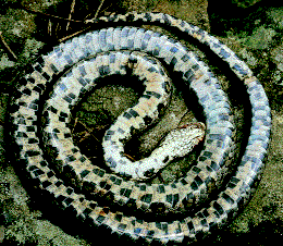 Now, I have to tell you that while I am not a big fan of finding local fauna inside of the home, I love nature and this kind of stuff really interests me. Snake-in-the-house issue aside, it actually was quite beautiful. Pausing for a moment to assess the situation, I then grabbed my trusty Peterson’s Field Guide to Reptiles and Amphibians and (while keeping an eye on the snake) started rapidly thumbing through it in order to identify our visitor. There was a picture of an Eastern Milk Snake that sort of fit the description. The Eastern Milk Snake is a constrictor of sorts, its bite is not poisonous, and it probably came in seeking mice, which it likes very much (and this house was a mouse smörgåsbord). One of the ways to identify that it was a milk snake and not a poisonous snake was to look at its belly to see if there is a checkerboard pattern.