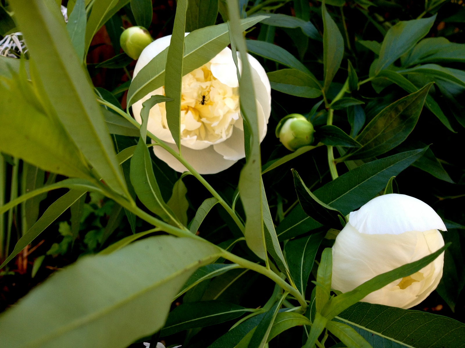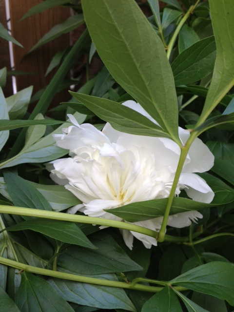 When I first moved to this latest house in a long line of homes, one of the more lovely aspects of the place was a gorgeous, well-established white peony that someone had planted by the front of the fence. The peony flowers, along with a couple of very large poppy plants, were the only bright spots in yard that was otherwise a sea of weeds and garbage.