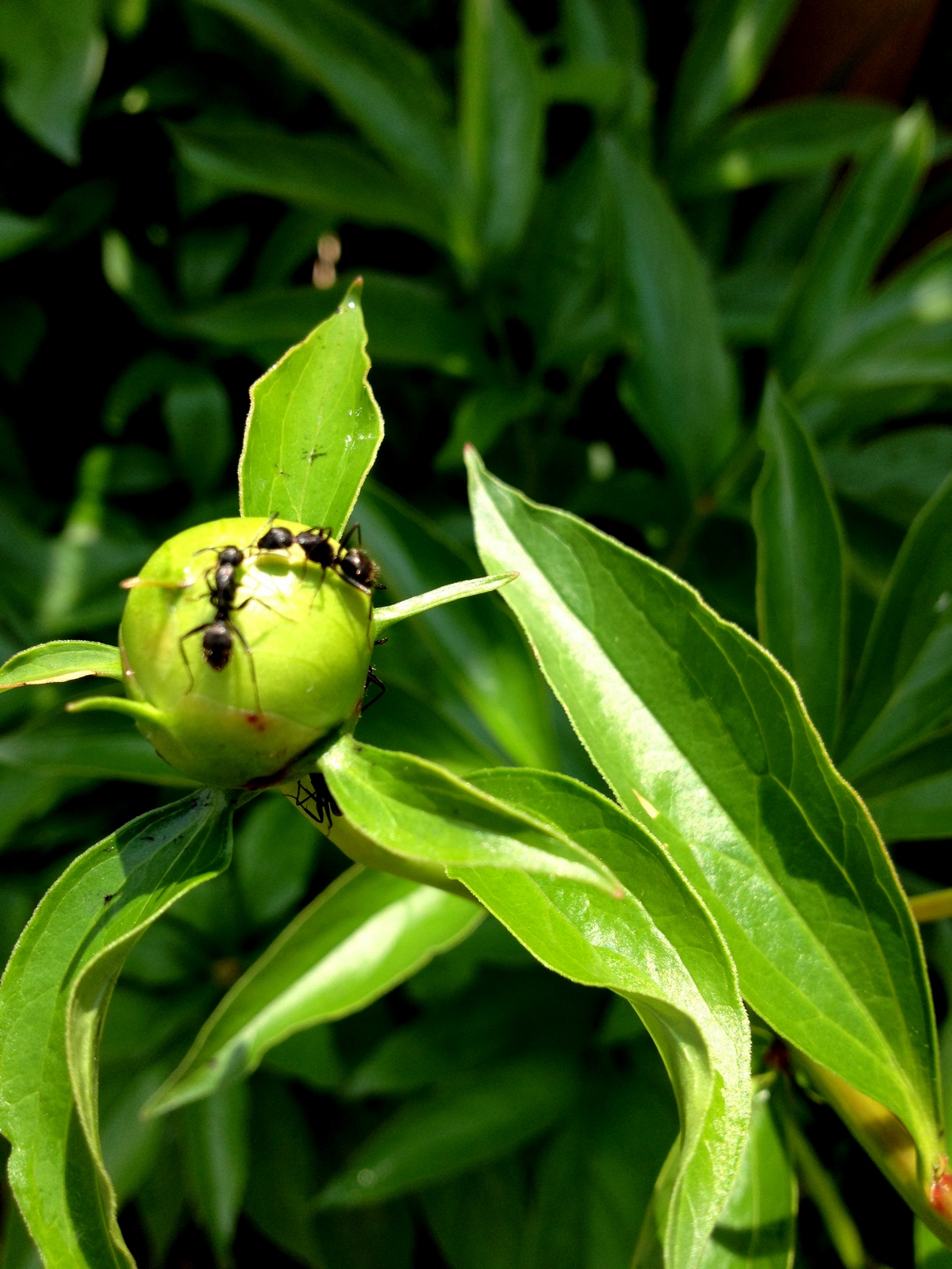 At year four something new started growing in that spot.  Emerging out of the poisoned, dug up spot.  I awaited with trepidation – how was it possible for anything to grow there again?  But lo and behold (this is actually what I said out loud when I saw it – “lo and behold!“) it was a normal peony!  With normal leaves!  Not only did it flower, but the ants were crawling all over it, which I think was a very healthy sign.