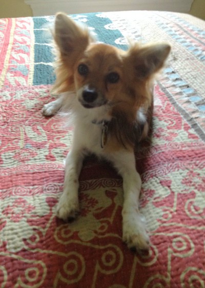 He was an endearing little calico-colored guy with big radar ears. They would run photos of him, “waiting for his forever home”, and then there would be a clinic and he would not be adopted. The next week it was the same thing – fetching photos a small dog sleeping next to other dogs being fostered, curled up like a little package on a blanket. But not adopted. And the week after that too. Maybe it was even four clinics (I forget now) and nobody had taken him home with them. My rational mind was saying “What is wrong with this dog that he hasn’t been scooped up yet?” while the emotional mind kept whispering “Go get him”. I contacted the site and got the number of the person who was fostering him to ask a few questions. She said he was a great little dog. She also said he had a few “quirks”. Well, don’t we all……? So that very next weekend, I decided to take a ride upstate “just to check it out” and see.