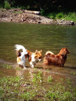 They say rescue dogs and especially puppy mill dogs will often have problems. Rudi’s “quirks” immediately became apparent, although some of them are good quirks. He clearly has abandonment issues and does not let me out of his sight. If I leave him home for even a half hour, he yips and cries in excitement when I return, as if I have been gone for weeks. Everywhere I go, there he is following me. If I am in the shower, he is poking his head in the curtain to make sure I am there. If I close the door, he is waiting outside of it. As I type this, he is in the chair next to me. When I move into the bedroom, he will follow. He will only leave my side if another dog is around for him to play with.