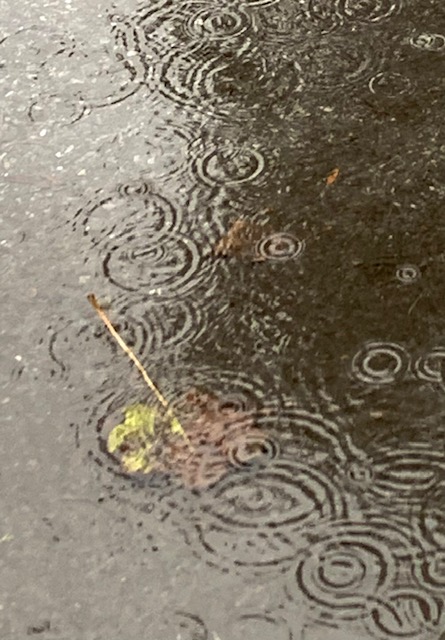 Last night when I took the dog out, we both stood on the sidewalk and let the delightfully heavy drizzle soak his fur and my hair. We did not feel the need to hurry inside. Today I stood outdoors conversing with a neighbor while a heavier rain fell from the sky. Neither of us mentioned that we were both getting pretty wet. We just kept talking.