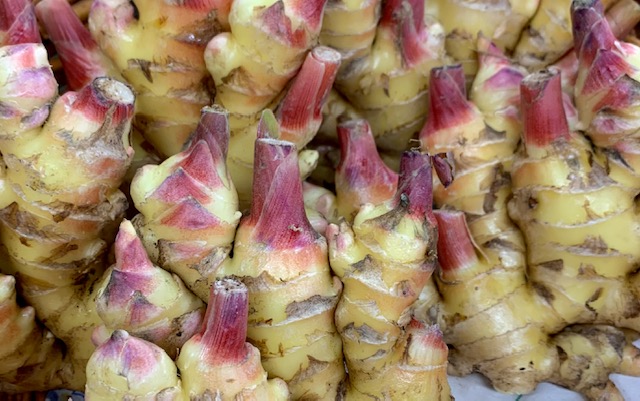 While standing there swooning over the mushrooms. I was drawn to a basket of ginger that was fragrant and beautiful. So many colors and textures of late Autumn heading to Winter.