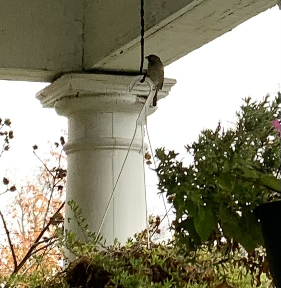 Four or five crows have returned to the neighborhood. They have been barking and calling for the last few mornings, swooping back and forth across the back yards. I am not sure what their plan is. I left them some bread and dried dog food this morning. They watched me, but I haven’t checked to see if they took it. The sky has been filled with starlings, covering entire bushes and trees, moving en masse, pulsating murmurations on the horizon. One house sparrow perches on the dying hanging porch plant, incessantly chirping.