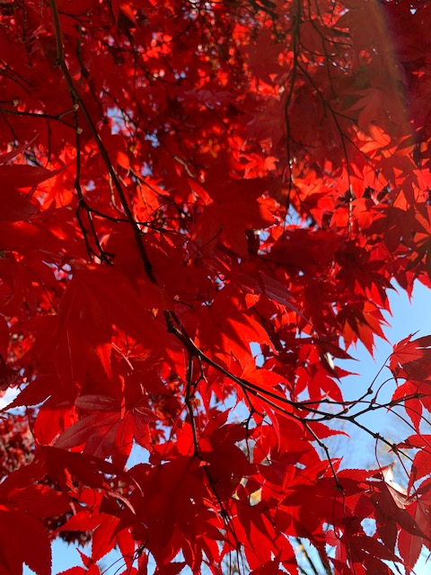 November has ushered out the last gasps of color. The red Japanese Maple moved from glossy maroon leaves to glorious flames of crimson before finally dropping all its leaves in one blowsy, fluttering show.