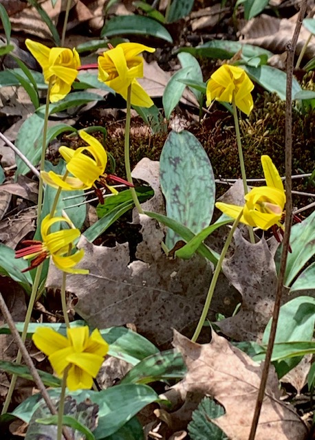 Boooooom! On the woodland floor I spied large pockets of Trout Lilies. It appears they are running rampant this year.