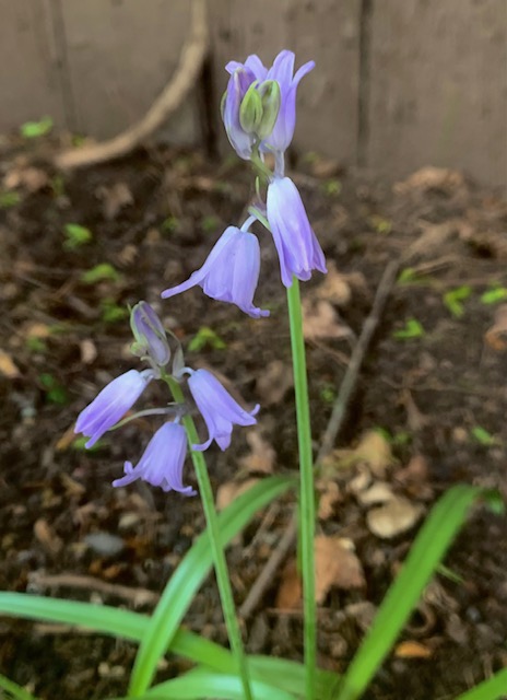A friend who lives about fifty miles away mentioned that Bluebells have suddenly appeared in her yard, although she had never planted them. Oddly enough, when I walked outside I discovered a surprise blooming of Bluebells on the side of my house. I did not plant them either and there has never been any growing here before. There must be a reason for these wanton appearances…. many, many seeds being carried from somewhere afar on the wind?