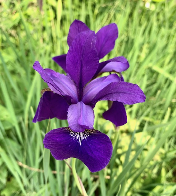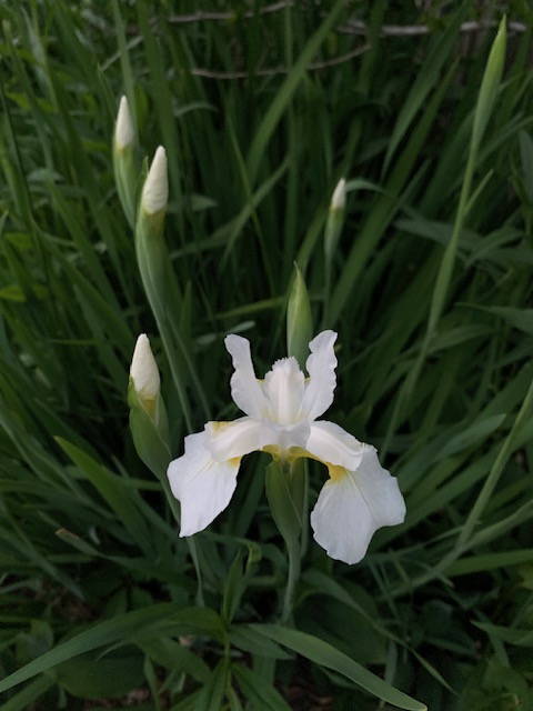 Soon thereafter the Siberian Irises send up their points. Some of my favorites, I have planted both white and deep purple varieties. They rise above their stalks like birds.