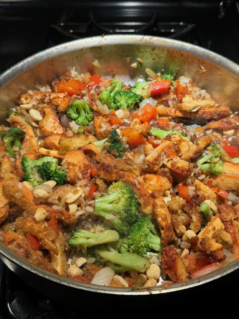The annual spring treat of Chicken of the Woods mushrooms (Laetiporus) lent substance to a dinner of “Chicken” Asian stir fry.