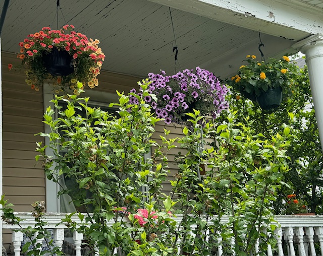 The hanging plants on The Urban Porch and the height of the Rose of Sharon have blocked some of the view from the street now, lending a bit of privacy.