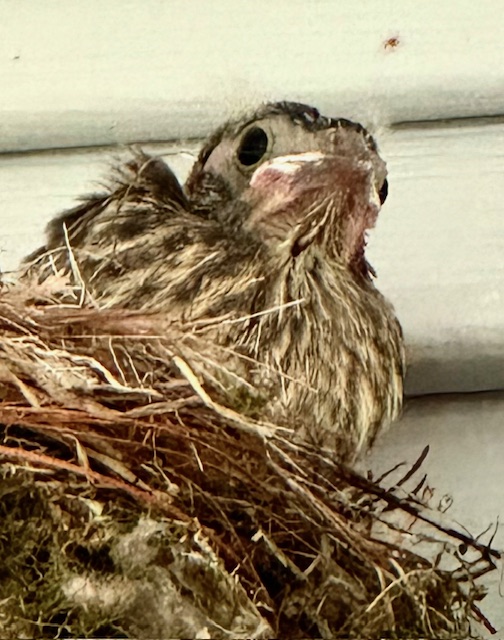 Fledglings teeter above a doorway, ready to join the wild, wide world. Good luck buddy!