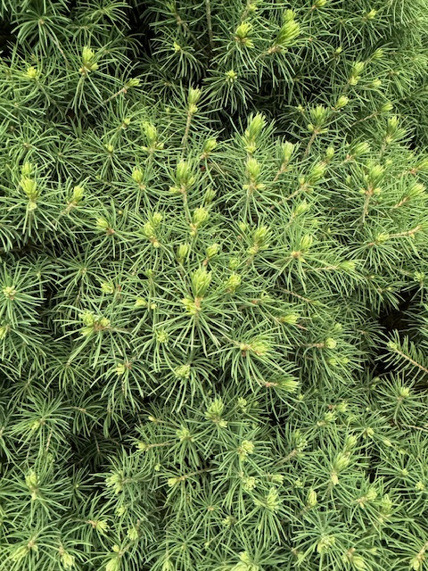 as are the small spruce trees next door. They look like they should be so soft, but when I run my hands across them, their sharp needles stick into my arm.