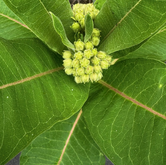 Milkweed has burst through the driveway and has begun to make buds