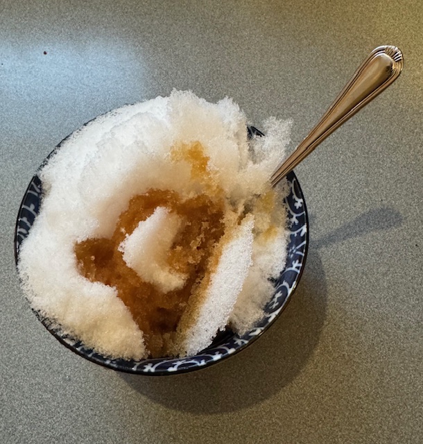 At least the accumulation has been beautiful, a lightweight, crystal-like texture. I made sure to have a bowl of maple syrup snow to celebrate the initial wonder of the freshly fallen.