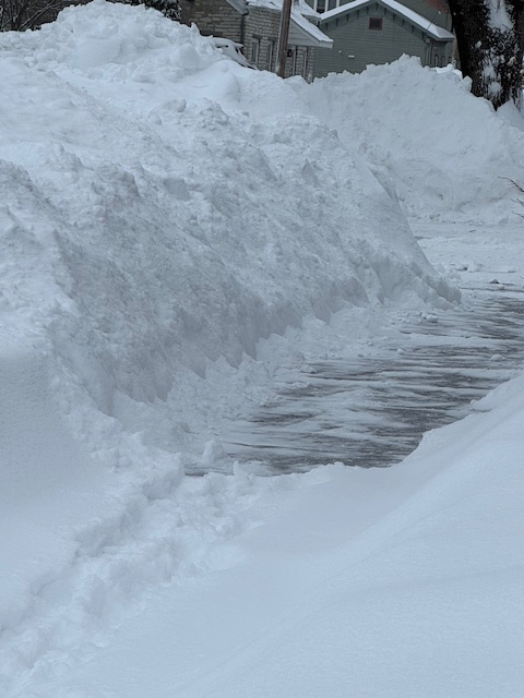 The sidewalks currently look like bobsled runs. It was fun to see people flying down the middle of the empty street on cross-country skiis. Neighbors were outside trying to keep up with the accumulation, commenting to each other things like “Can you believe this?” “I can’t deal with this!” “Climate change!” Yet on reflection, we were getting significant snowfall and blizzards back when we were kids. I have fond recollections of the pine trees with bows so laden with heavy snow and drifts that they touched the ground, creating igloo-like magical forts beneath them. The perspective of youth vs. adult responsibilities.