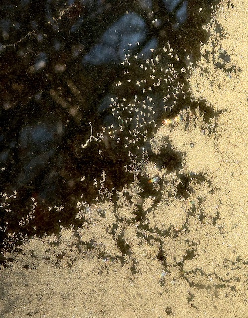 while the bathroom window continues to generate visions. I call this one “Trajectory of a Sneeze.”