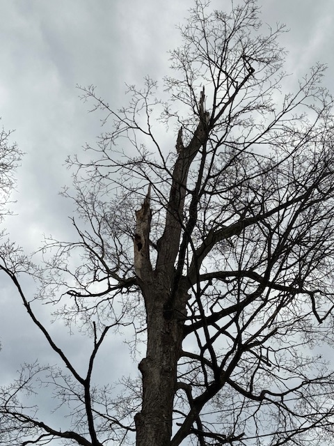 The Crow Tree is in really rough shape, having lost its pinnacles. The hawks, starlings and crows have not yet returned there, although I expect some might. Despite the deterioration and damage, it will most likely leaf out again as it does every year – if it doesn’t fall. How many years have I been writing that this tree is due to fall any day? Or not.
