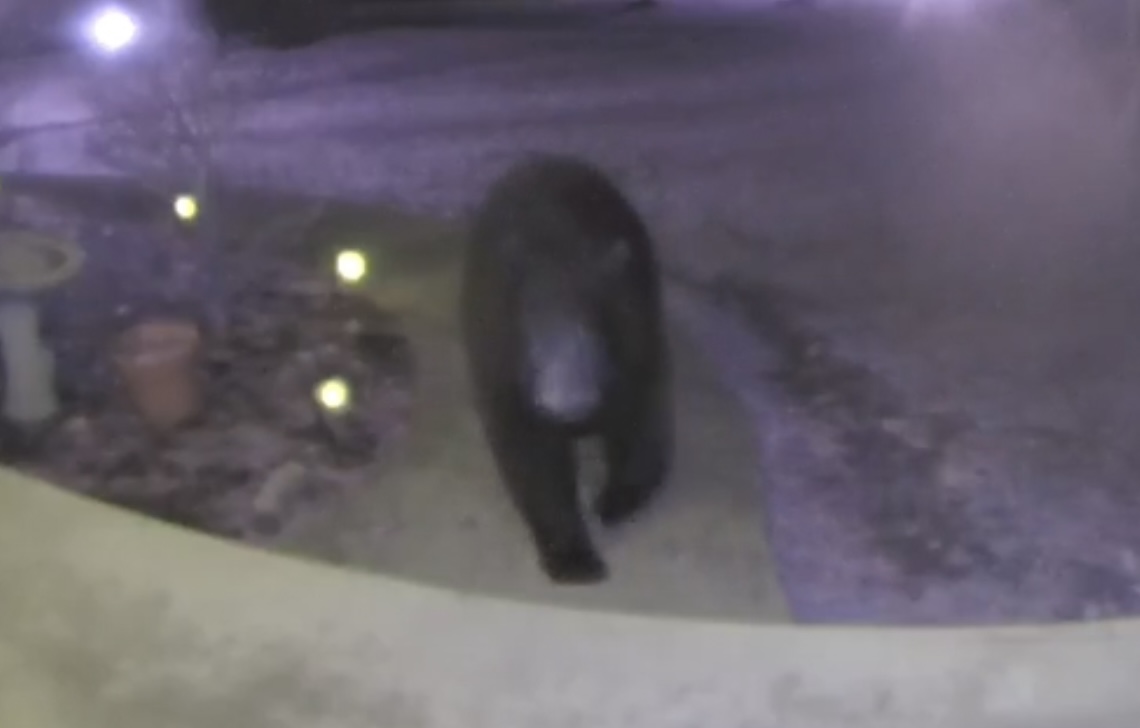 Hungry bears have come out of hibernation. This one strolled up the walkway and practically to my daughter’s front door, then cruised closely past their front room windows before ambling off into the woods.
