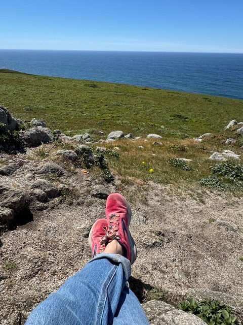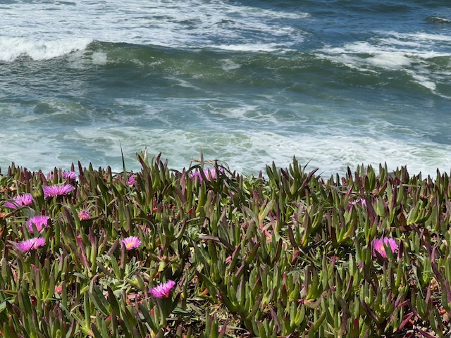 Ice plants and sea fig (Carpobrotus edulis and chilensis) blanketing the bluffs of Bodega Head along the coast.
