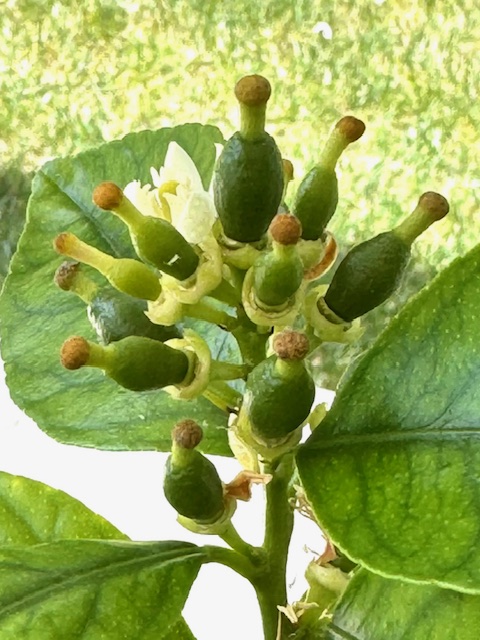 Small fruits were just starting out on the potted lime tree on my family’s back porch.