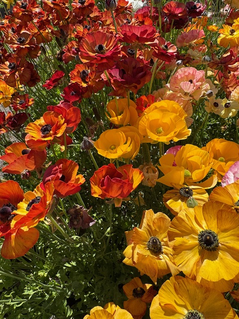 A visit to a lovely botanical garden (Filoli) had beds filled with the warm glow of Ranunculus