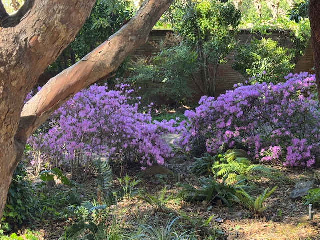 and Azaleas, tucked among the trees, bordering shadowed walls.
