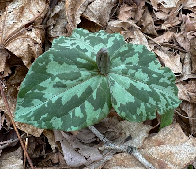 The single Trillium that never quite opens all the way has emerged for yet another spring. I planted that Trillium (along with one or two others that didn’t last very long) fourteen years ago. Each year the hope is that it will surprise me and open all the way. I suppose the surprise is that it even comes up at all.