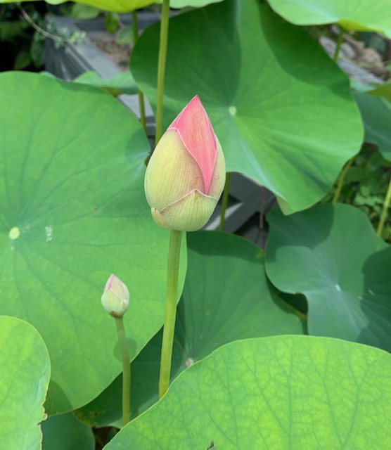 Not yet opened, the artichoke-shaped buds reach their raised fists toward the sky.