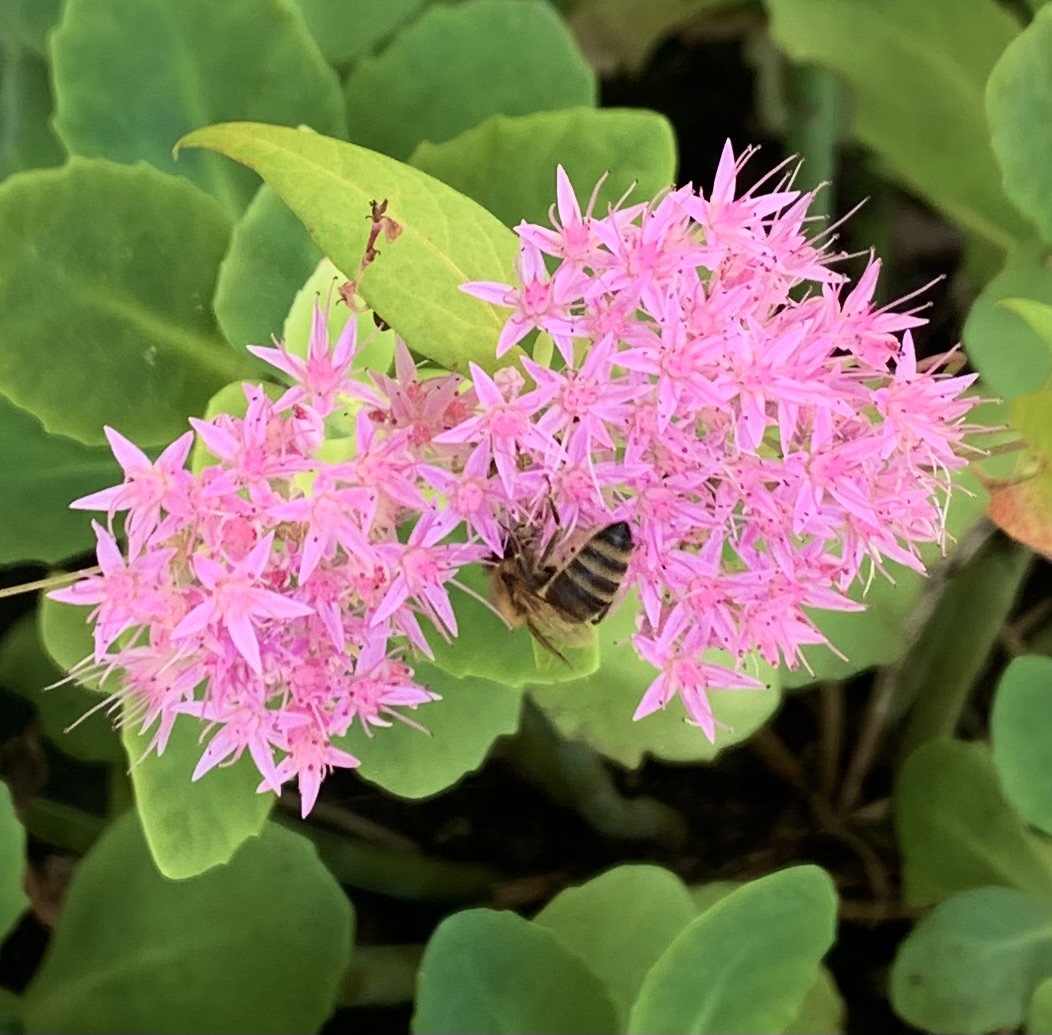 The huge Rose of Sharon that lends privacy on The Urban Porch has once again not disappointed, creating a deep pink, bumble and honeybee-filled screen.