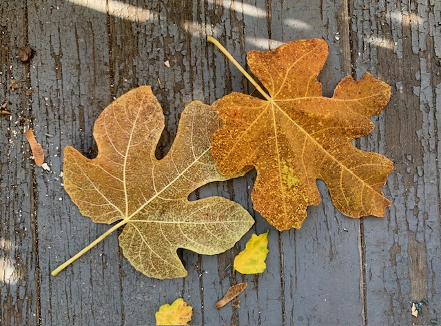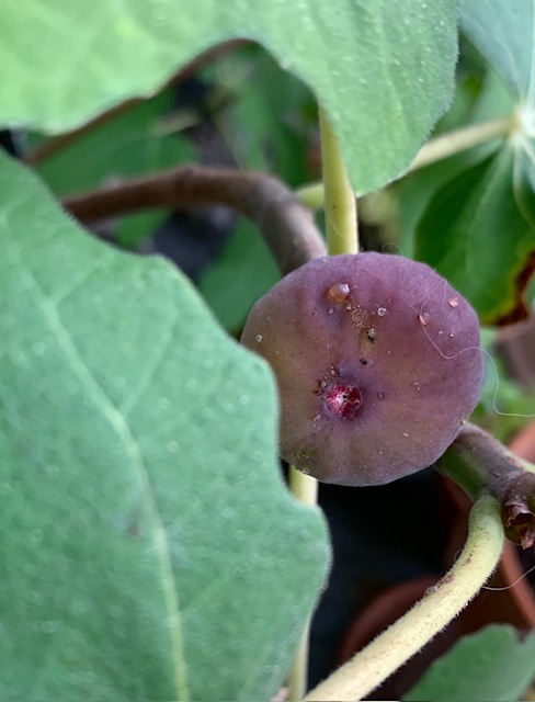 Late as it is, the potted fig tree has finally begun making a few tiny figs. Hopefully they will get large enough and come to full term. So far the squirrels have not stolen any. Every time I look at them, I silently will them to hurry up and ripen, but of course everything happens in its own time, if at all.