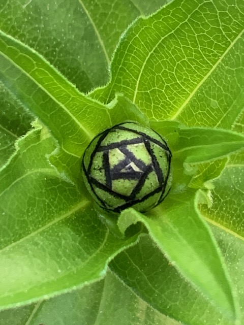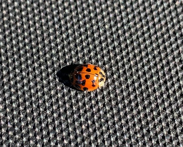 Tiny black and red ladybug larvae have appeared on the porch over the last couple of weeks, alighting on a flower pot, landing on my hand or lap as I sit outside sipping iced tea. They look like little monsters – I had to do some checking to figure out exactly what they were. I don’t recall seeing any last year, but have encountered plenty this month. Apparently they eat aphids, so they are a good thing.