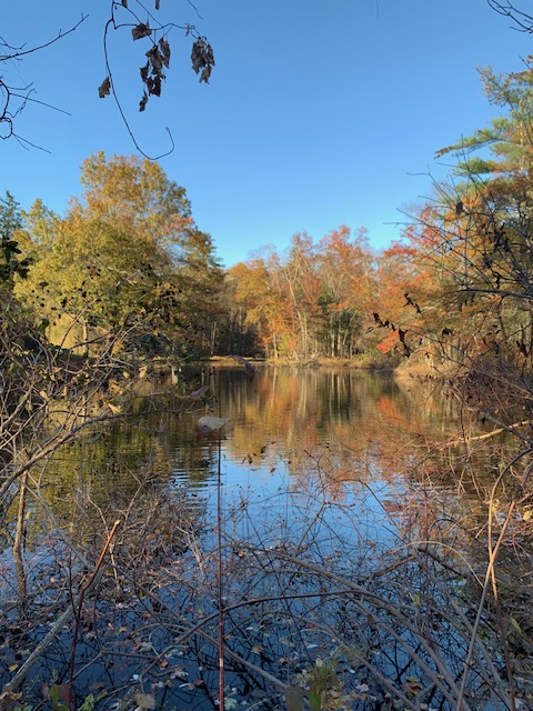 Every once in a while I will glance down from my upstairs bedroom window in order to catch the flashes of crimson fish in my neighbor’s backyard koi pond. Seeing them lends a tiny slice of serenity. I’m always glad that most of them tend to survive the predators and winter cold, rising back up from the bottom to return each Spring. You can only see them from above until the trees come into full leaf during summer, at which point the view is obscured.