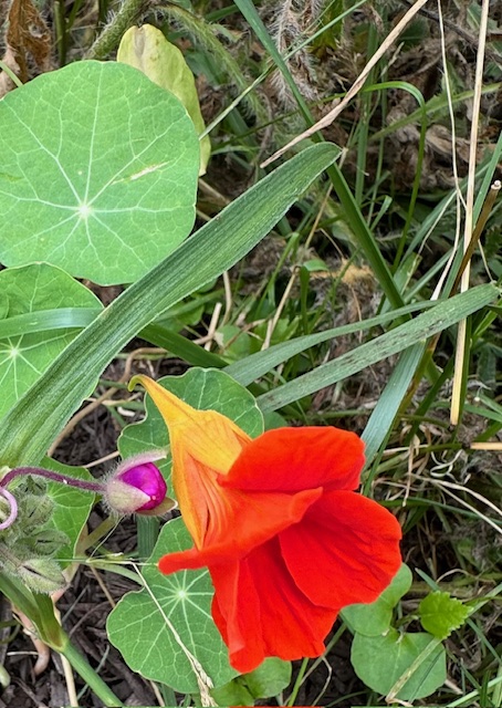 A few Nasturtium are spreading out and opening in the patch where the poppies had previously been.