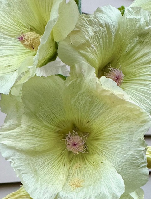 Some flowers blew quickly by – the Hollyhocks that return each year by the kitchen haven’t merited comment and are pretty much done now. The palest of yellow, they lack contrast, tending to get lost against the house of a similar shade.