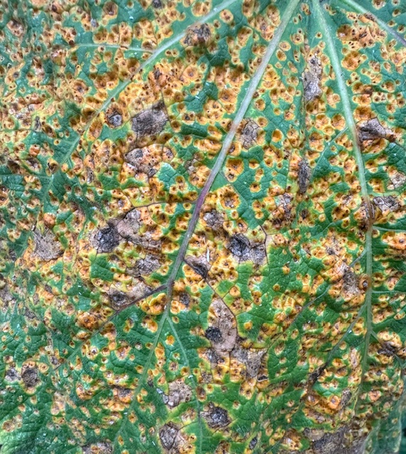 The leaves have developed Hollyhock Leaf Rust Disease, which should probably be dealt with. Although it’s not a good thing, the affected leaves look interestingly cool in their own damaged way. I’m actually enjoying the patterns of the fungal infestation on them more than the blooms…..
