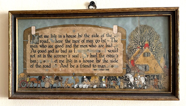 Let me live in a house by the side of the road Where the race of men go by- The men who are good and the men who are bad, As good and as bad as I. I would not sit in the scorner’s seat Nor hurl the cynic’s ban- Let me live in a house by the side of the road And be a friend to man.