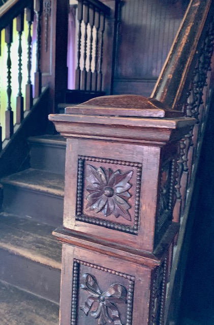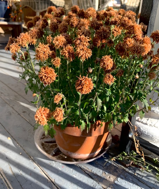 As part of the pre-Halloween cleanup I removed anything from the porch that I might have regrets about losing. Everything would probably be fine if I didn’t bother, but after having had a wicker chair walk off years ago, I would just as soon bring the remaining ones in for the night and not leave out any temptation, especially since in this neighborhood we get some significant Halloween traffic. Some of the plants that summered outdoors need to come inside anyway. I rolled up the colorful little outdoor rugs and stored them. And then of course I had to sweep, since it’s littered with dirt, peeling paint and debris.