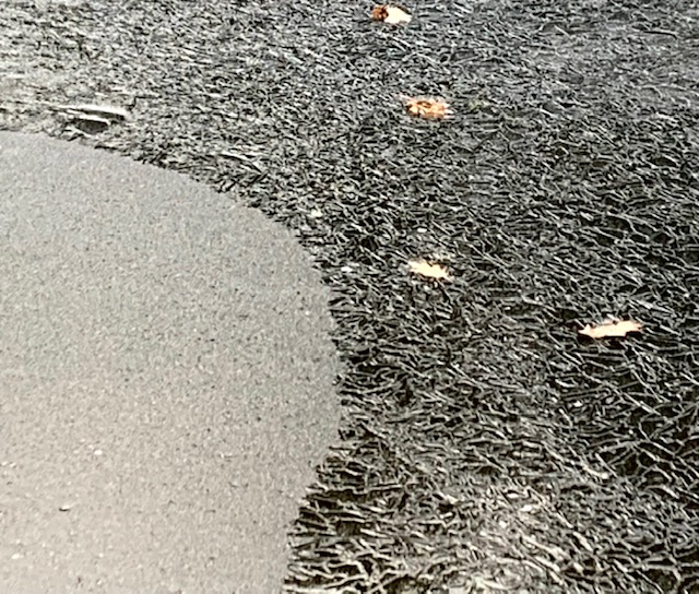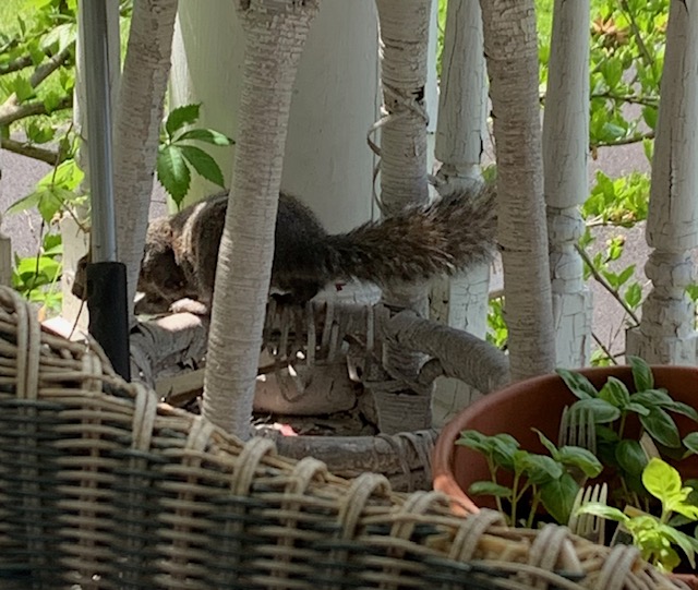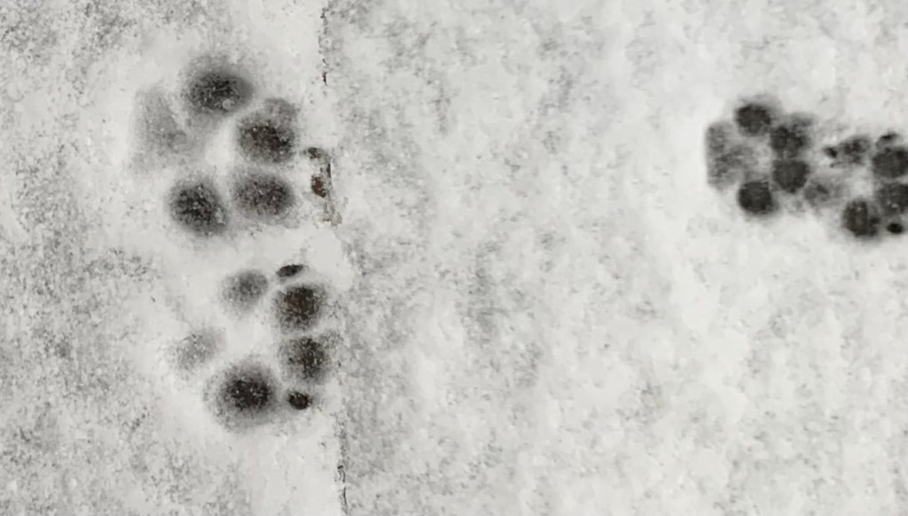 Whatever it was, it appears to have ceased. I have been routinely checking to make sure the “regulars” who come through here are still present. I haven’t seen the big, fluffy, mostly white skunk for a while, so I am a little concerned about that one. The scent of skunk is in the air, but these days it’s difficult to tell which is animal and which is someone vaping weed out on the street. There is a possum hanging around and then the raccoons and the babies. Perhaps only some of the cubs come out at a time. The other night there was just one, slowly following the mother, who kept stopping to turn around and wait up for it.